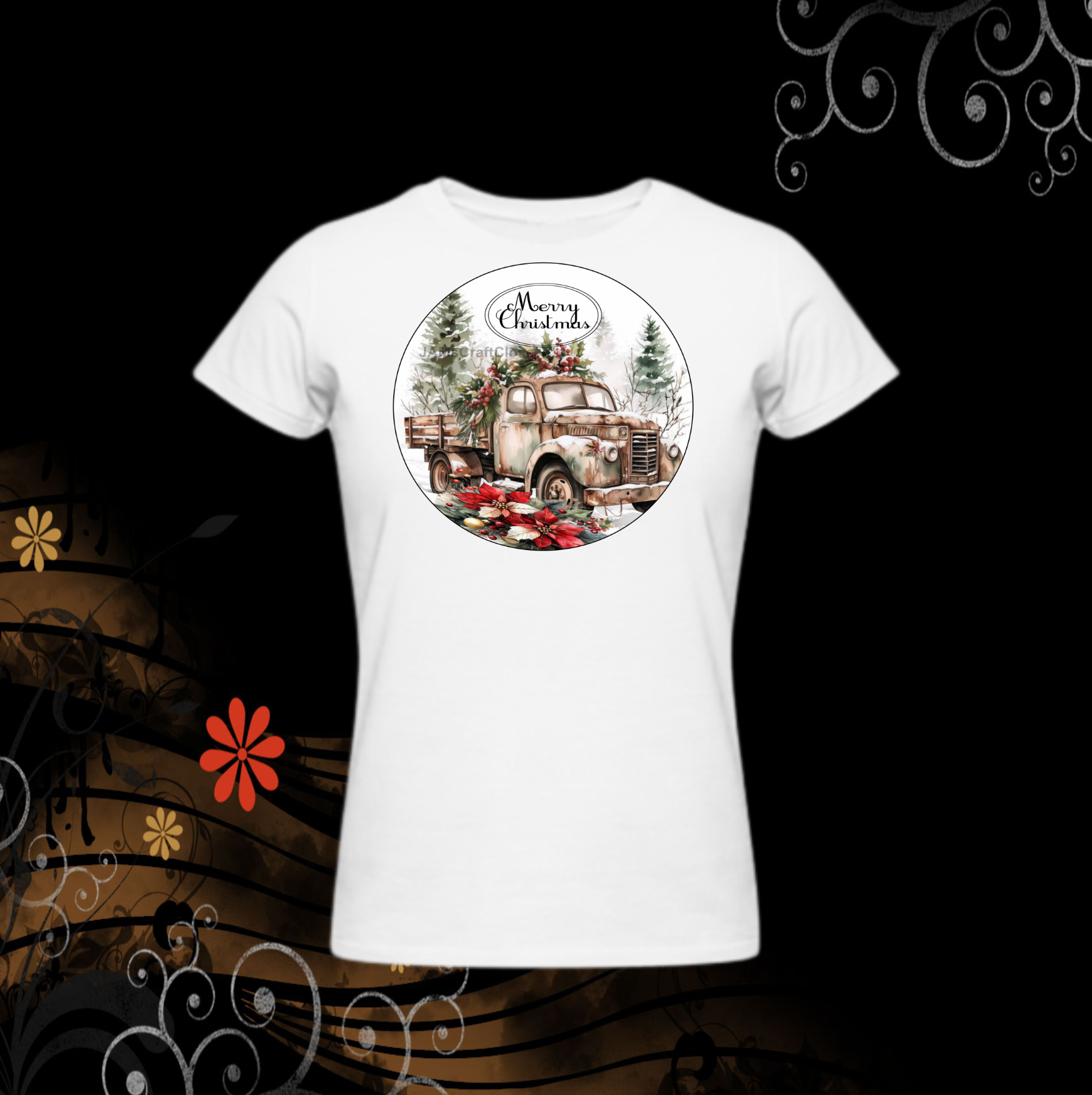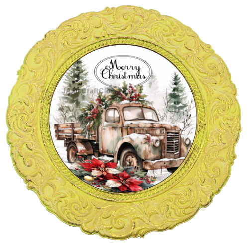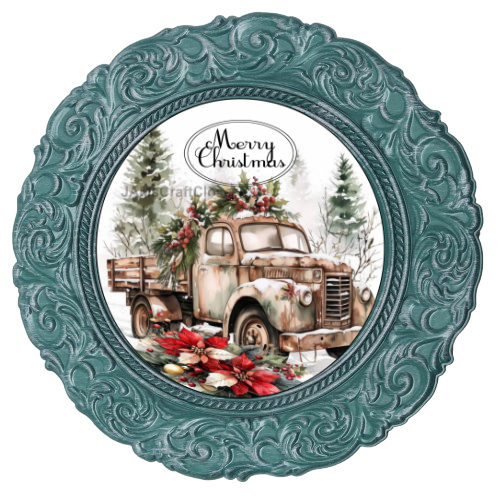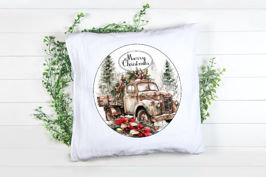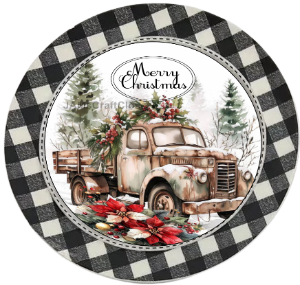 ROUND Digital Graphic Design MERRY CHRISTMAS OLD TRUCK - CHRISTMAS DESIGN PNG-JPEG-PDF-SVG-Decoupage-Sublimation Design Graphic Country Farmhouse Home Decor HOLIDAY Decor Gift Crafters Delight