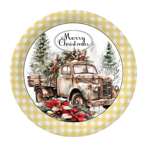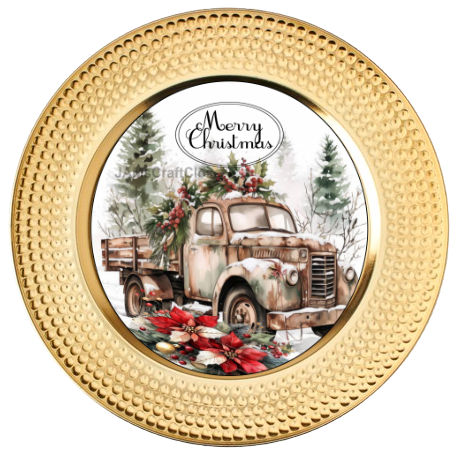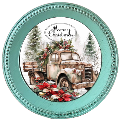 ROUND Digital Graphic Design MERRY CHRISTMAS OLD TRUCK - CHRISTMAS DESIGN PNG-JPEG-PDF-SVG-Decoupage-Sublimation Design Graphic Country Farmhouse Home Decor HOLIDAY Decor Gift Crafters Delight - JAMsCraftCloset