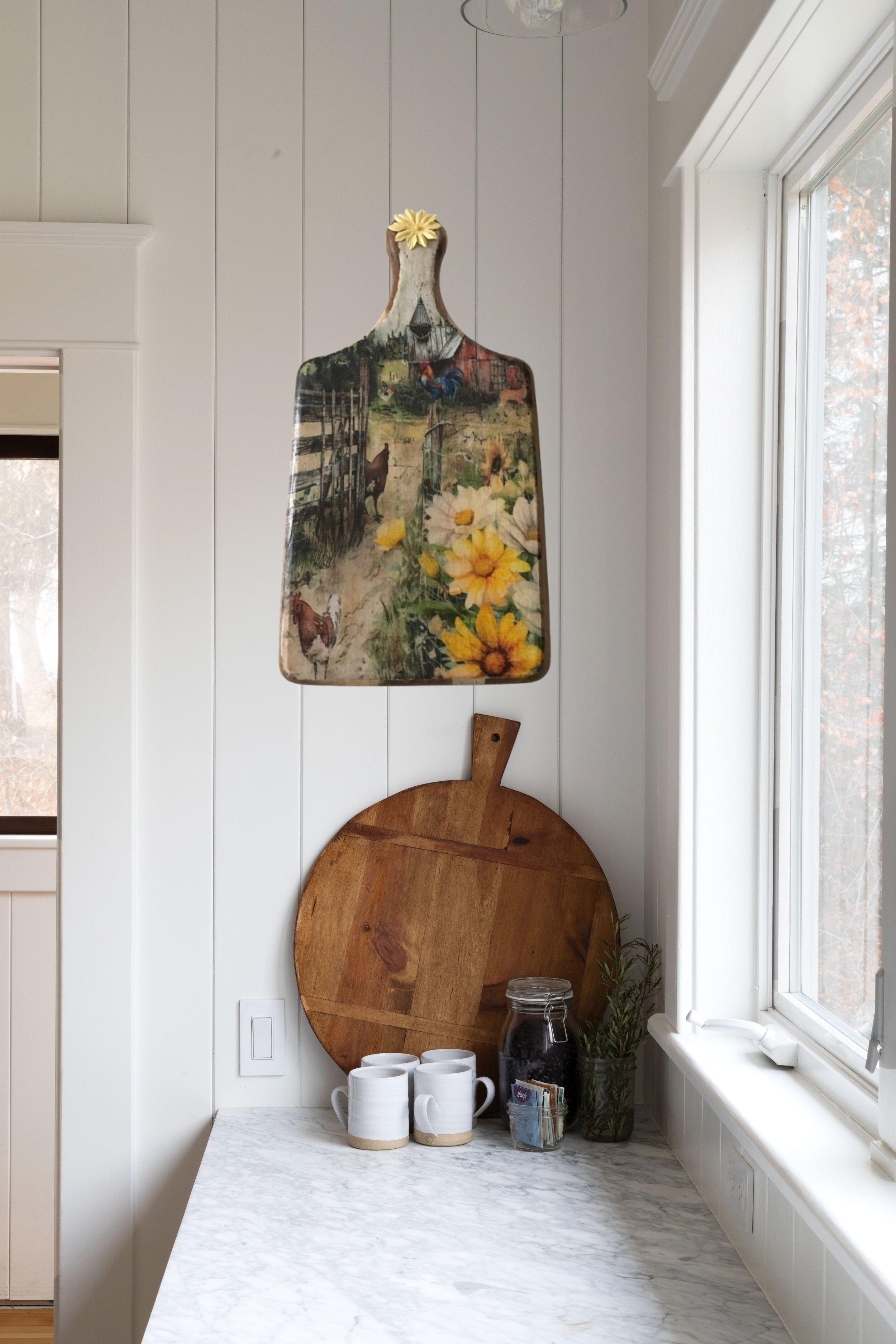 This piece is not just functional; it’s a conversation starter that adds character to any space. Perfect for keeping track of your shopping list, the back is a chalkboard or as a decorative accent; it embodies a blend of artistry and practicality. Elevate your kitchen with this unique addition that reflects a love for nature and the simple joys of life.